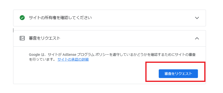 Adsense側で確認が完了すれば、サイトの所有権を確認してくださいの左側が緑色になります。