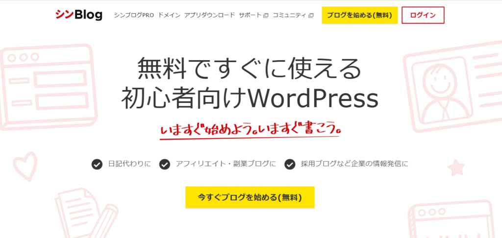 この記事では、無料でWordPressを始めたいと思っている人向けに、シンブログサービスを紹介します。