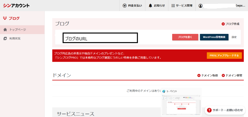 ブログのURLの右側にある「WordPress管理画面」をクリックします。